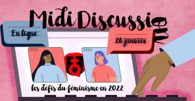 À l'AGA de septembre 2021, les membres ont exprimé vouloir plus de moments d'échanges, de rencontres et de discussions collectives. On commence à partir de janvier 2022! Chaque dernier mercredi du mois, vous êtes invité à participer à un midi-discussion avec chaque fois un thème différent. Ces rencontres d'une durée d'une heure (de 12h à 13h) se dérouleront sur Zoom. Selon le nombre d’inscriptions, nous formerons un ou plusieurs groupes afin de favoriser les échanges et apprendre les unes des autres. Avec votre caméra ouverte ou fermée, votre dîner ou un café, venez partager vos idées, vos pratiques et vos actions dans une ambiance informelle et chaleureuse.