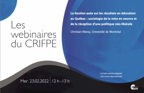 Webinaire - La Gestion axée sur les résultats en éducation au Québec : sociologie de la mise en oeuvre et de la réception d'une politique néo-libérale