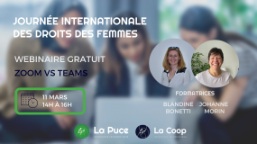Durant ce webinaire, nos formatrices vont vous aider à comprendre les différences entre deux plateformes de collaboration à distance qui ont gagné en popularité avec la pandémie à savoir Zoom et TEAMS. Laquelle de ces deux plateformes répond réellement aux besoins de votre organisation? Quel usage optimal en faire? Voilà les questions auxquelles Blandine et Johanne, deux femmes très habiles avec différents outils technologiques, aborderont avec les participantes.