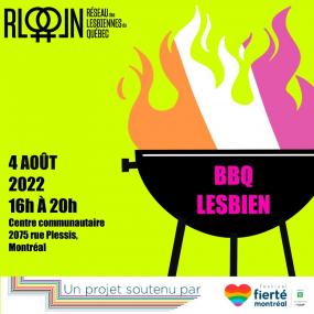 Cette année, dans le cadre de Fierté Montréal, le Réseau des Lesbiennes du Québec reprend son événement qui eu un énorme succès en 2021: le BBQ Lesbien! Cet événement s’adresse à toutes les femmes de la diversité sexuelles qu'elles soient cis, trans, intersexe, queers, agenre, non binaire ou à genre fluide qui aiment les femmes. Le BBQ Lesbien est le seul événement communautaire de la sorte s’adressant spécifiquement aux femmes de nos communautés. Nous souhaitons briser l’isolement des femmes LGBTQIA2S+ de manière informelle afin de consolider nos liens et notre sentiment d’appartenance.