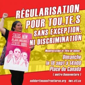 En cette période électorale au Québec, nous appelons tous et toutes les travailleurs.euses, tous et toutes les migrant.e.s et toutes les personnes dans la province qui croient en la dignité, l’égalité et la justice à soutenir un programme de régularisation complet, qui inclut toutes les personnes sans statut. Le populisme raciste et xénophobe n’a pas sa place au Québec et il ne doit pas empêcher le gouvernement provincial de soutenir la régularisation de TOUTES les personnes migrantes sans statut. Nous avons une occasion historique de nous opposer au racisme systémique et de défendre ensemble la dignité humaine et l’égalité. Nous devons la saisir.