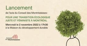 ont le plaisir de vous inviter à la présentation des faits saillants de leur avis pour une transition écologique juste et féministe à Montréal.