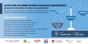 L’équipe de recherche présentera les recommandations tirées de ces trois phases de travaux, croisant celles de femmes victimes, d'intervenantes et d'acteur·trice·s judiciaires, et celles des regroupements.