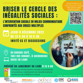 Agenda néolibéral, nouvelle gestion publique, pandémie, crise du logement, changements climatiques : les crises dans nos sociétés sont multiples et s’additionnent. L’intervention sociale en milieu communautaire subit et tente d’agir face à de multiples enjeux. Au cœur des actions, la transformation sociale serait-elle une voie à emprunter pour briser le cercle des inégalités sociales? Venez réfléchir et discuter sur le sujet avec nous!