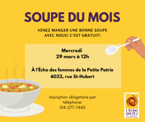 La prochaine soupe aura lieu le mercredi 29 mars.